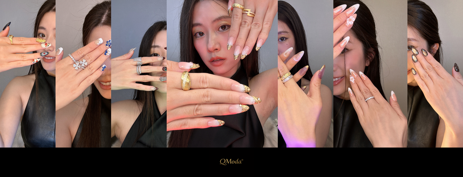 QModa 25-12S-2S,S-URBAN SILENCE COLLECTION-Gilded Restraint, 100% hand made craft press on nails